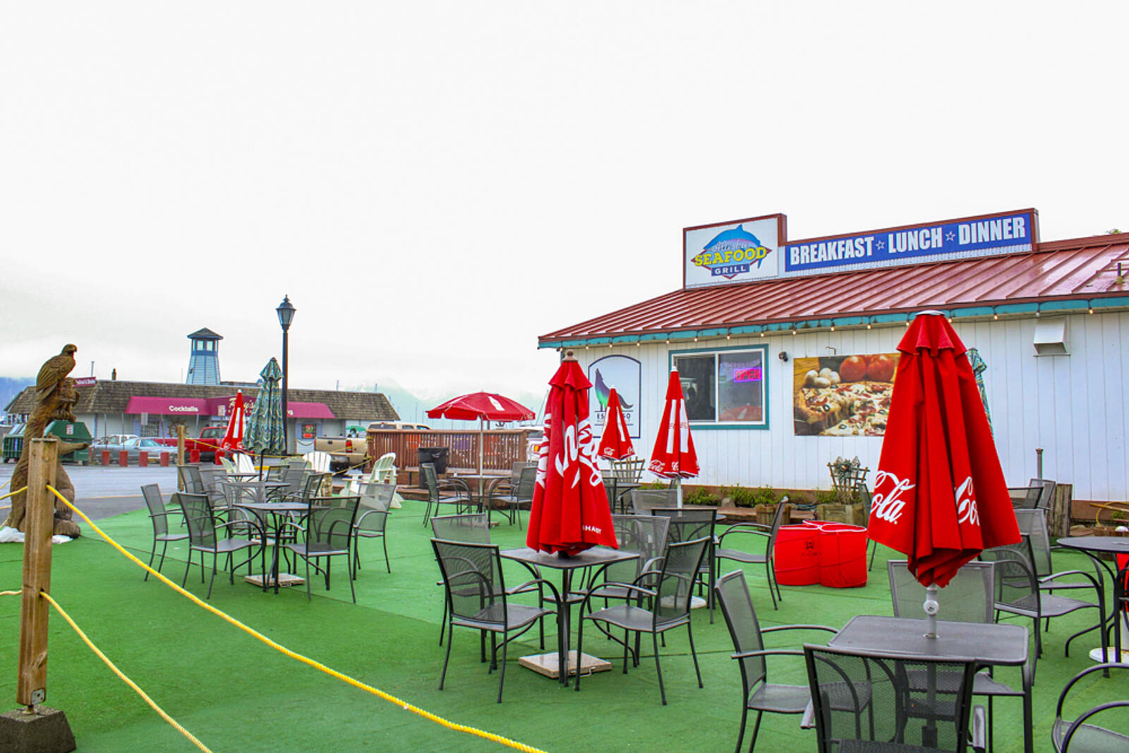 Just across from the small boat harbor in Seward, Alaska Seafood Grill serves delicious comfort food with indoor and outdoor seating where you can take in a gorgeous view of the harbor and mountains beyond.