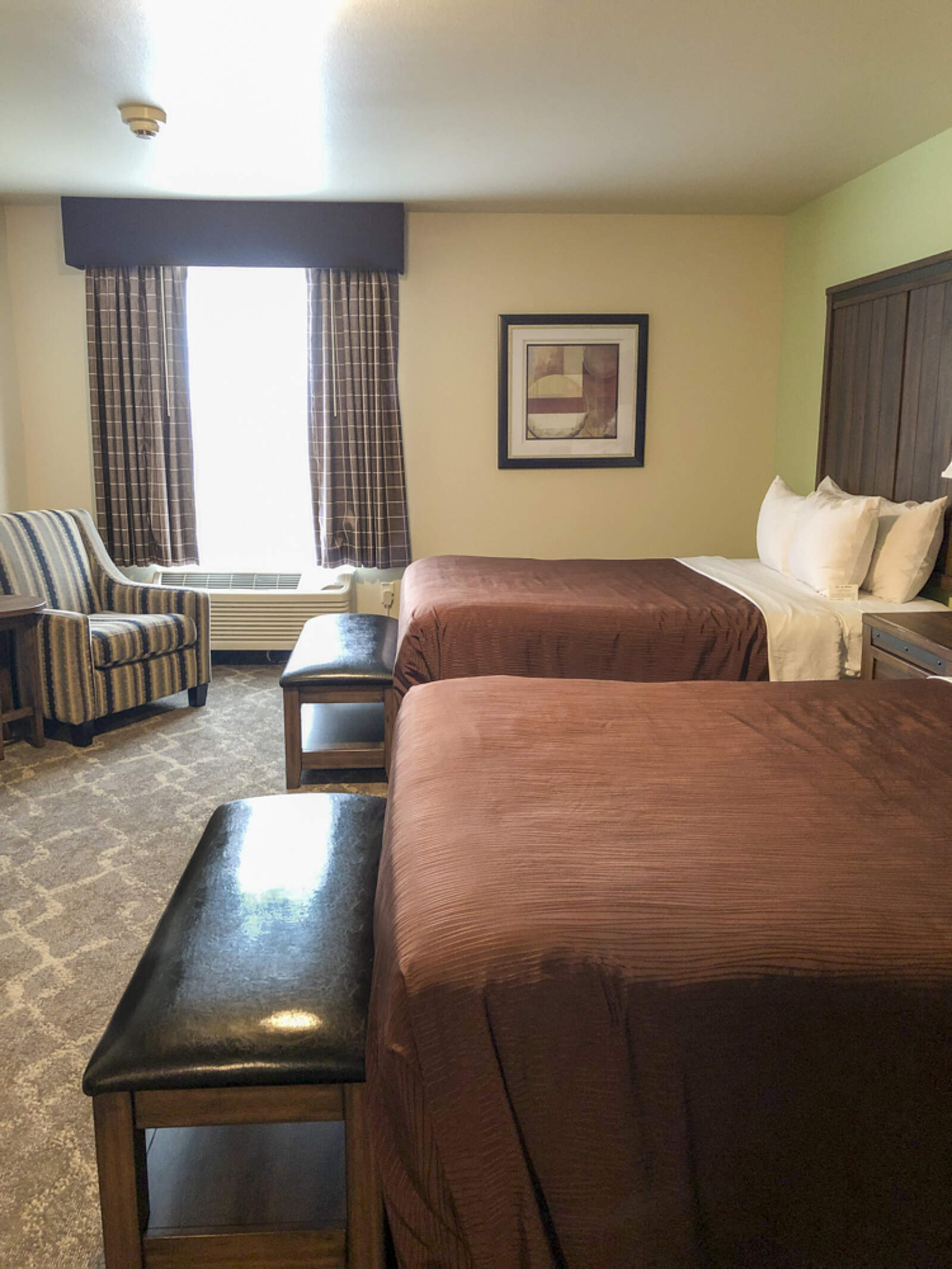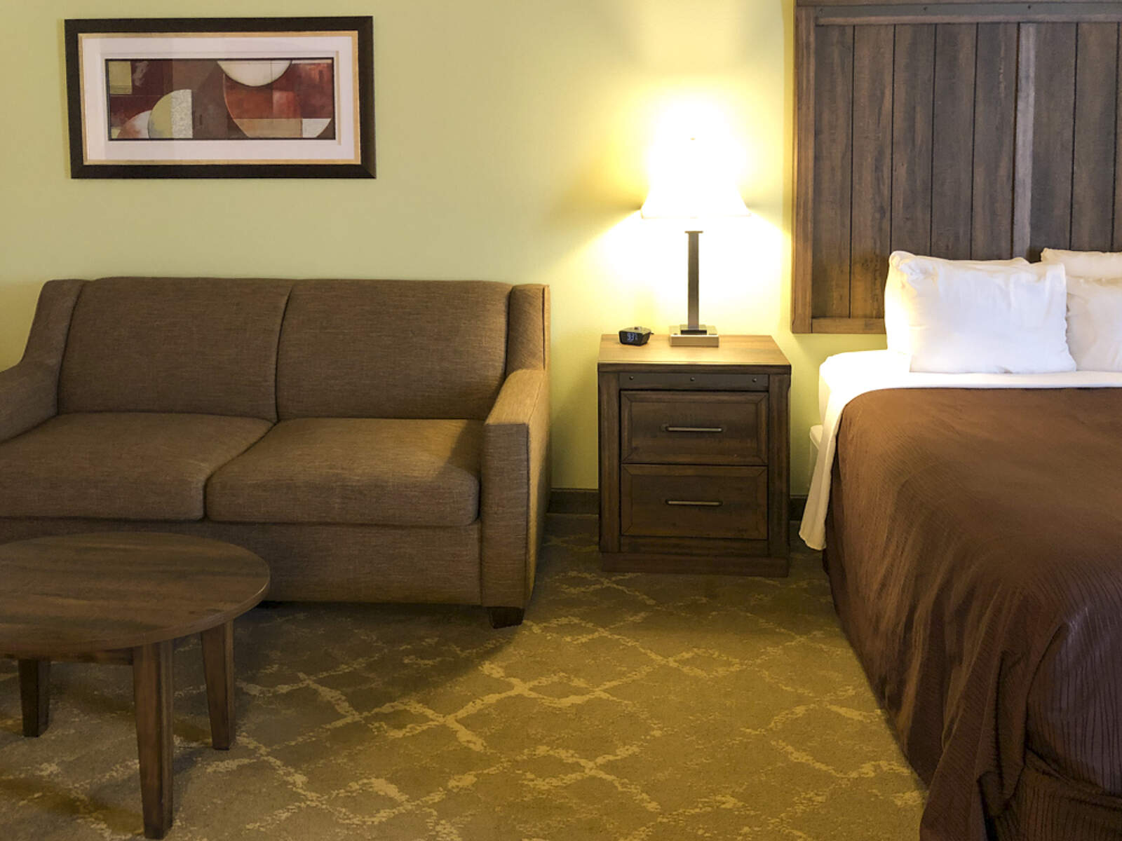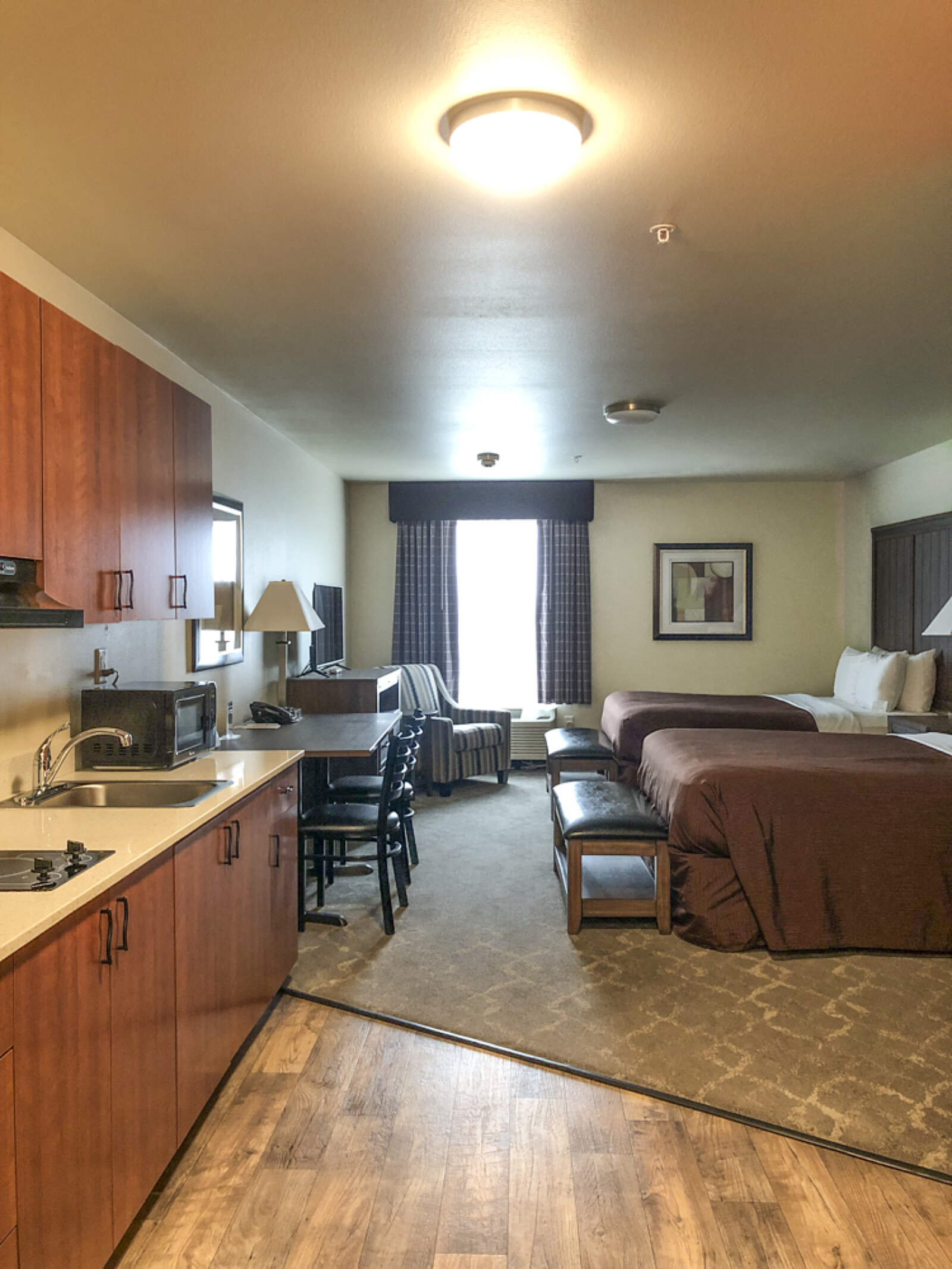 Spacious rooms include either a queen-size bed with pull-out sofa bed or two queen-size beds. Kitchenettes have everything you need for cooking, including a fridge and freezer, stovetop, microwave, sink, and coffee maker (with coffee from an Alaskan roaster), plus pots, pans, and dishes. The hotel, which is decorated with local photography, also has a fitness center, and dog-friendly rooms are available.