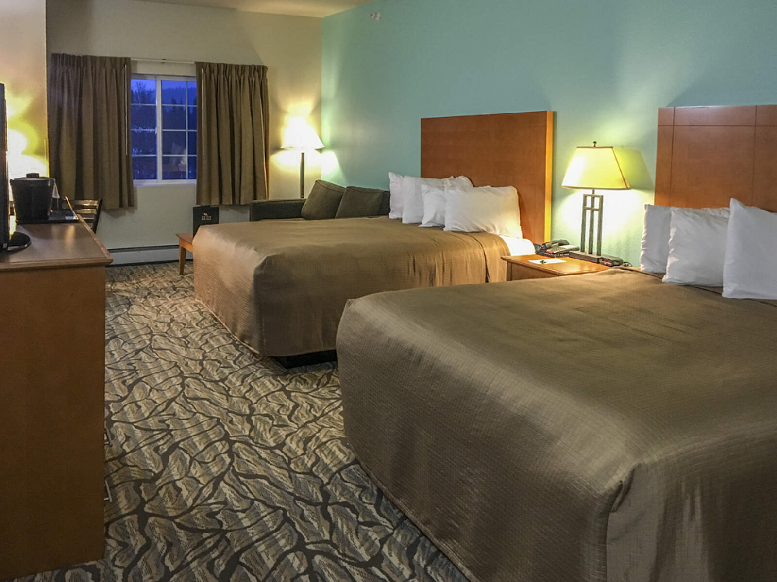 Located in the heart of Soldotna, the Aspen Suites Hotel Soldotna sits right on the Kenai River, world-famous for salmon fishing, and there’s a boardwalk behind the hotel perfect for walking along the river. The hotel also features rooms with kitchenettes, making them perfect for short- or longer-term stays.