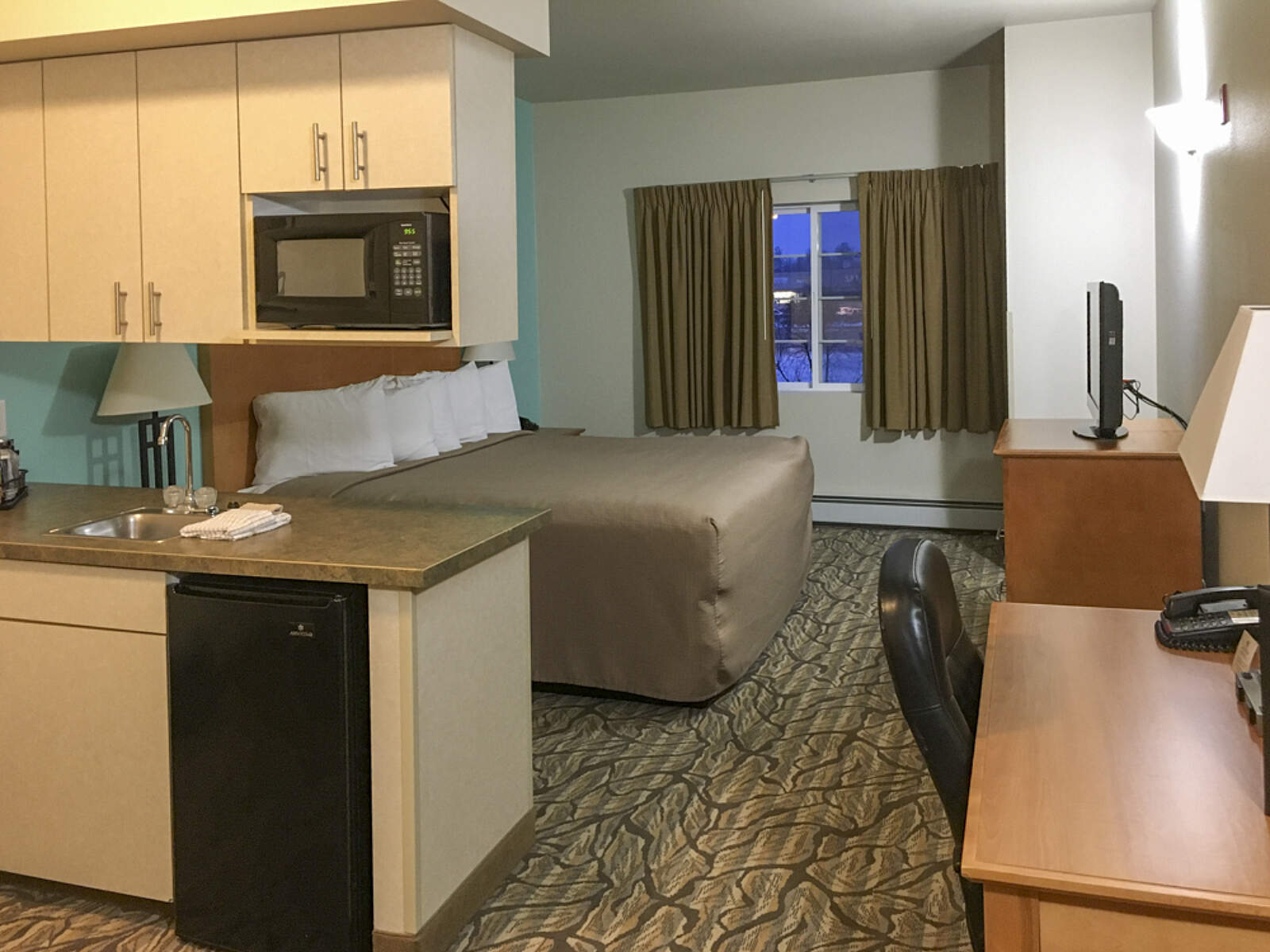 Amenities include a business center in the lobby as well as a pool, hot tub, and fitness center, and comes decorated with local photography of the surrounding area. Dog-friendly rooms are available. Choose from deluxe suites with a king-size bed or one with 2 queen-size beds; all come with a microwave, coffeemaker, and refrigerator. There are also 2 family suites that include a single queen bed with a twin bunk bed and a pull-out sofa bed, while the executive suite features a king-size bed with a queen-size pull-out couch. An extended-stay suite has two separate rooms, a bedroom with king-size bed and a queen-size pull-out sofa bed, as well as a kitchenette with a cooktop.