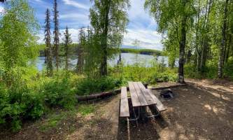 It’s a “best of both worlds” kind of place — where you can spend the day exploring a virtually private lake with interesting bays, or quickly dash back to your vehicle to explore or fish other lakes along the Nancy Lake Parkway.