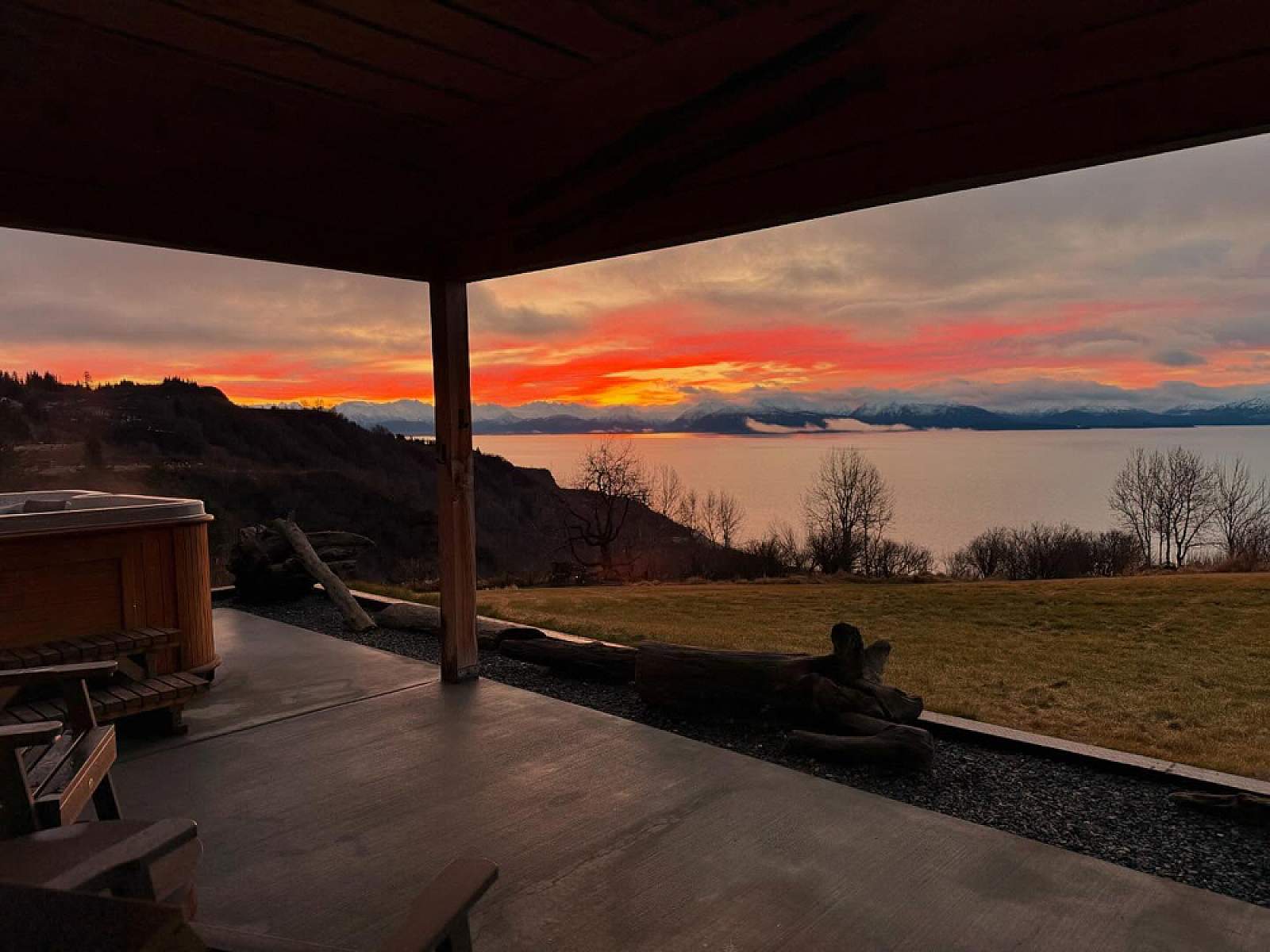 Luxury cabins at Seafarer at Baycrest overlook Kachemak Bay from more than 500 feet above the water, with sweeping views of the Kenai Mountains.