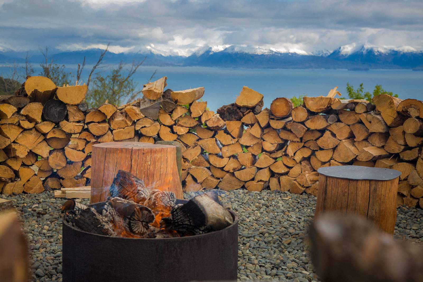 You’ll also find handcrafted furnishings, fully equipped kitchens, natural-gas grills, firepits, and open lawns overlooking the bay.