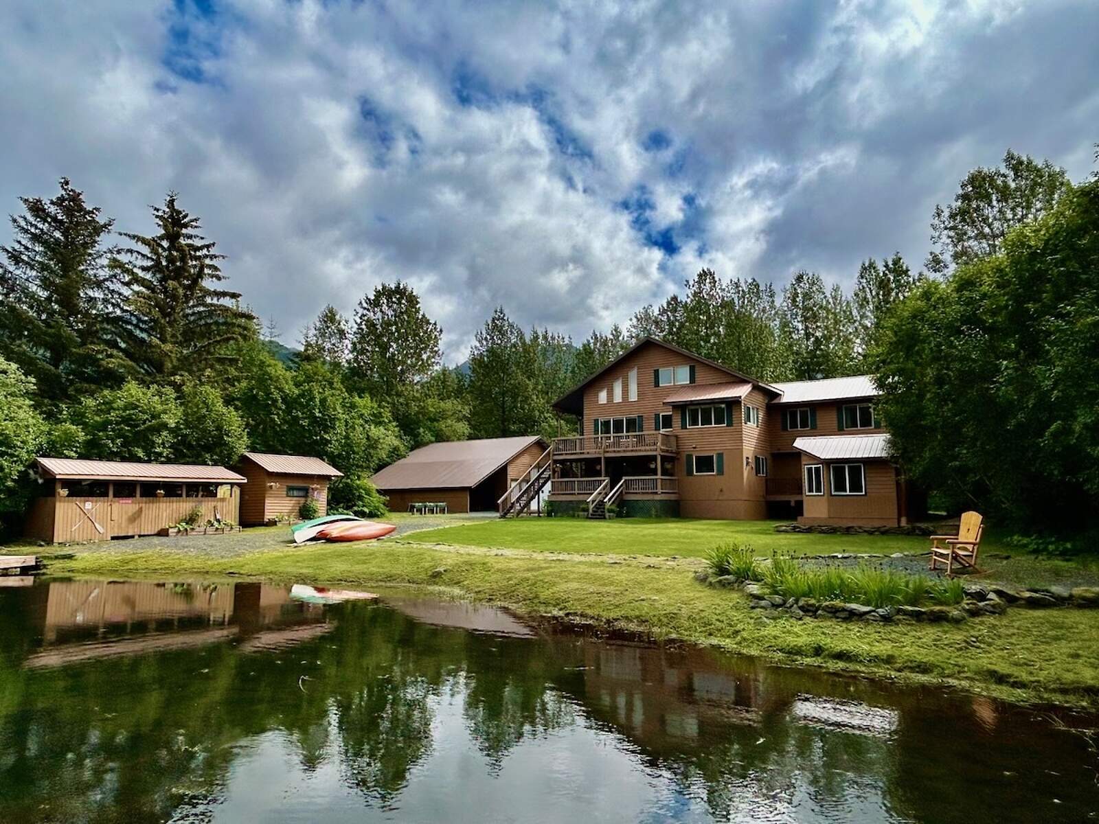 Bear Lake is a freshwater alpine lake where most of the shoreline is owned by the Borough and Forest Service, guaranteed to stay undeveloped. The lake has just a few houses on one end; the rest is wilderness. A fish weir on the river feeding the lake gives you prime salmon viewing, and during summer evenings, you can hear the loons calling to each other across the lake. From your room or the lakeside deck, watch for bald eagles roosting in spruce trees, moose wandering the shoreline, and duck families paddling across the water.