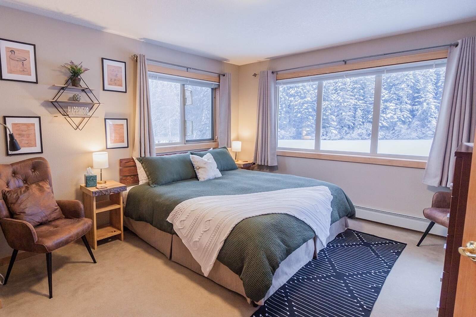 Each room has down comforters, plush mattress toppers, blackout curtains, and luxury linens for restful sleep after long days of adventure.