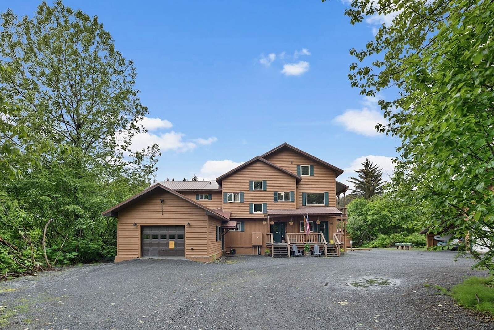 To get here, turn off of the Seward Highway onto Bear Lake Road and follow the road for one mile. When you come to the end of the pavement, turn left into the driveway.