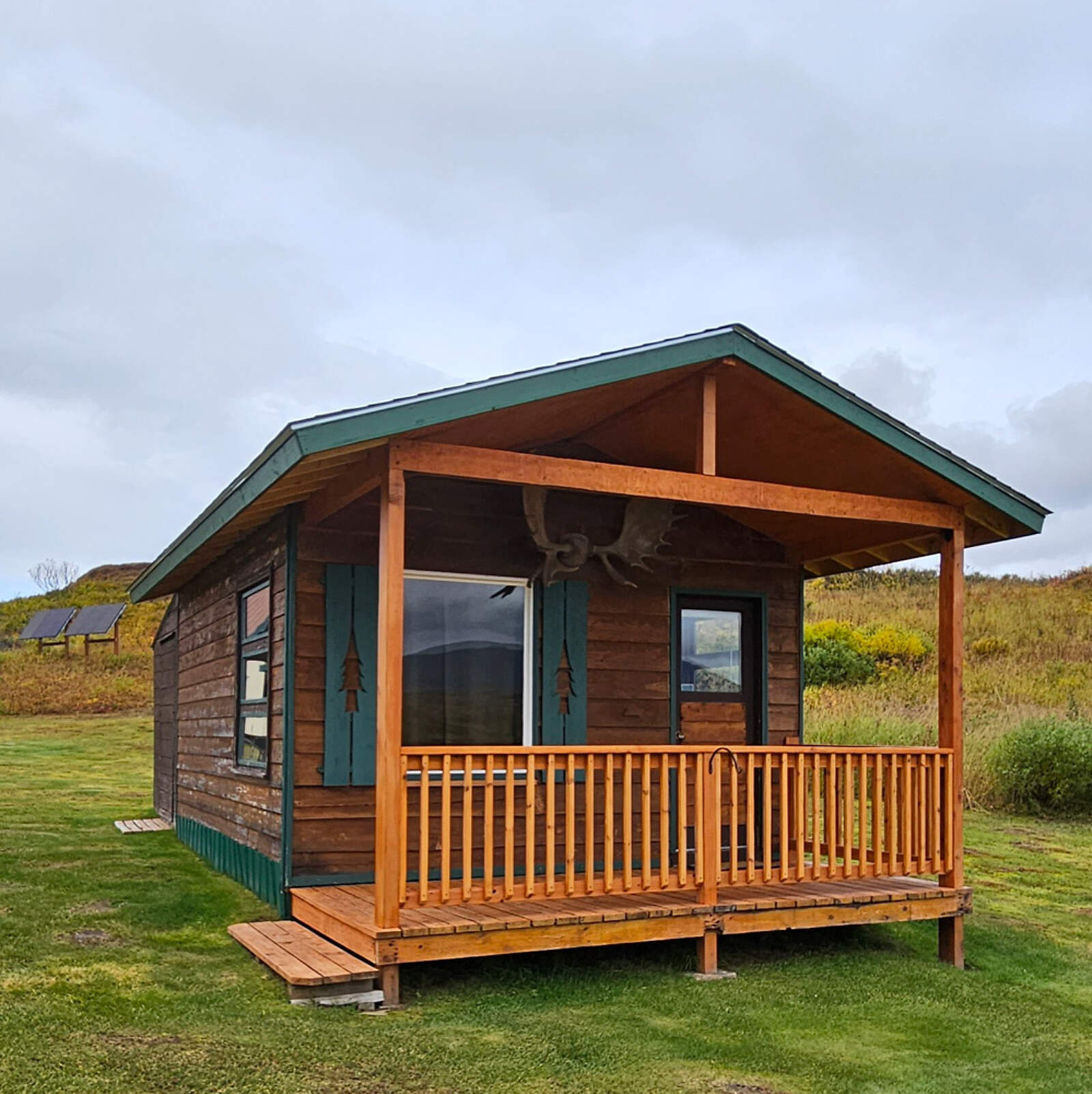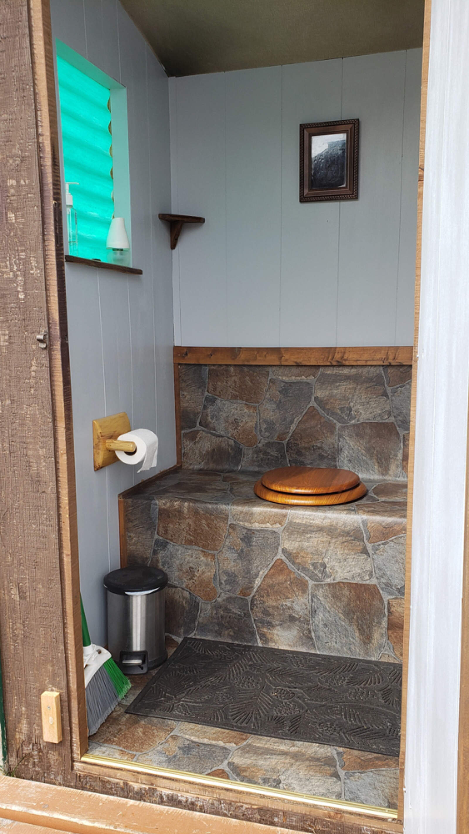 As a nod to authentic wilderness living, cabins do not come with private bathrooms. Rather, the property has two outhouses (which are immaculate, guests rave) as well as a shared yet private shower house with a handy sign to tell if it’s occupied.