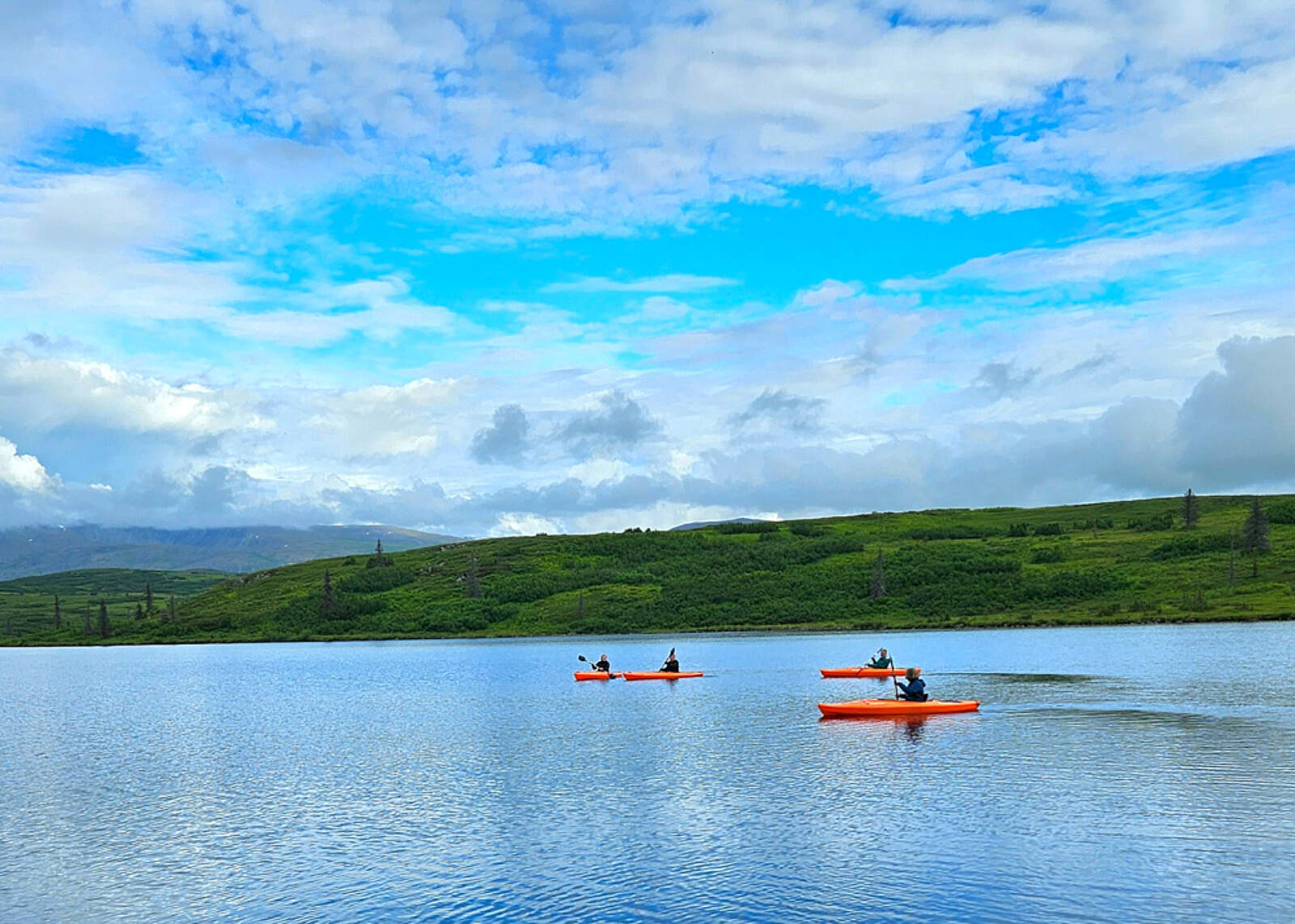 If you stay, though, you’ll reap the benefits of days of exploration. Your hosts can customize your itinerary—whether you want to do some guided or unguided hiking, ranging from a short walk to enjoy the iconic view of Denali to adventurous full-day hikes, kayak across the lake, fish for trout, or go summertime berry picking (for blueberries, crow berries, watermelon berries, salmon berries, and low-brush cranberries).