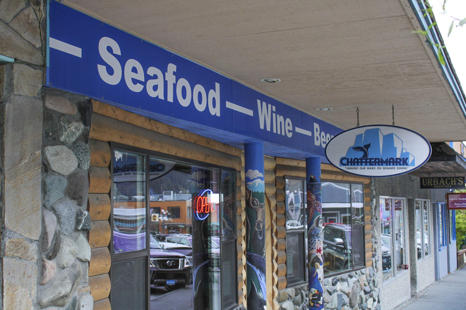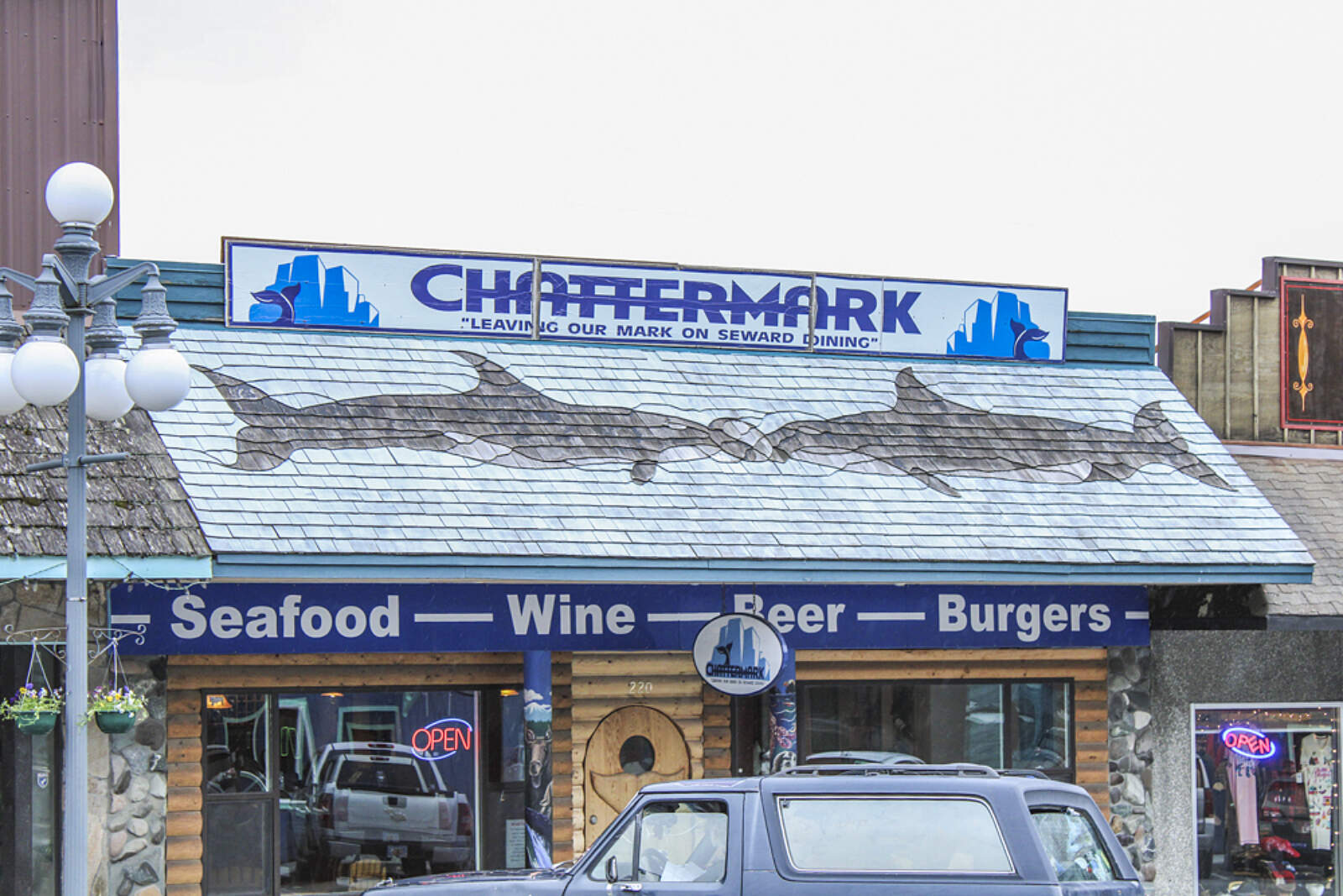 Located in the middle of downtown Seward, Chattermark serves up tasty lunches and dinners in a cozy setting that was cr0.afted almost entirely from spruce kill wood. You can't miss it downtown: look for the distinctive awning where painted shingles form two orcas in what looks almost like a mosaic.