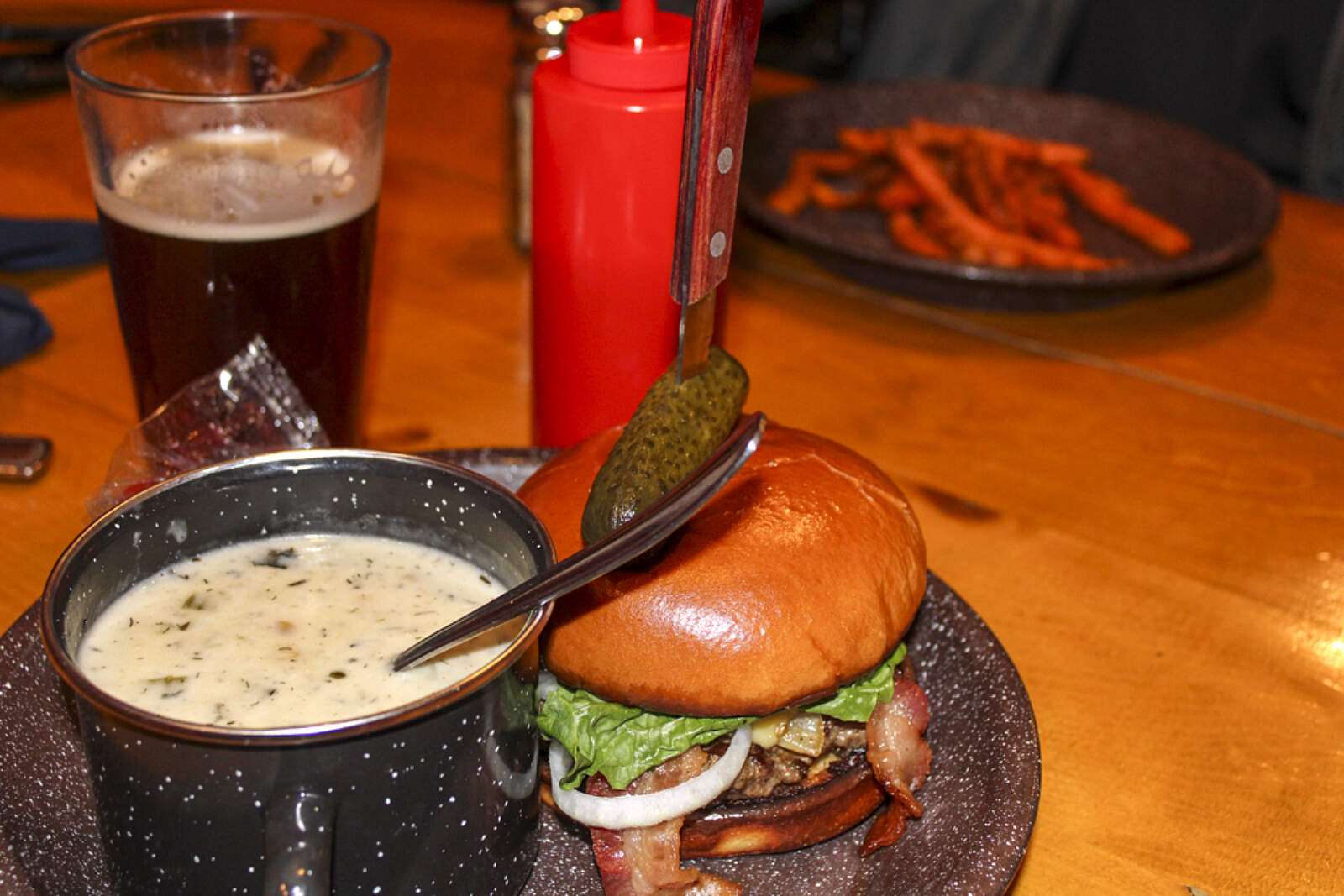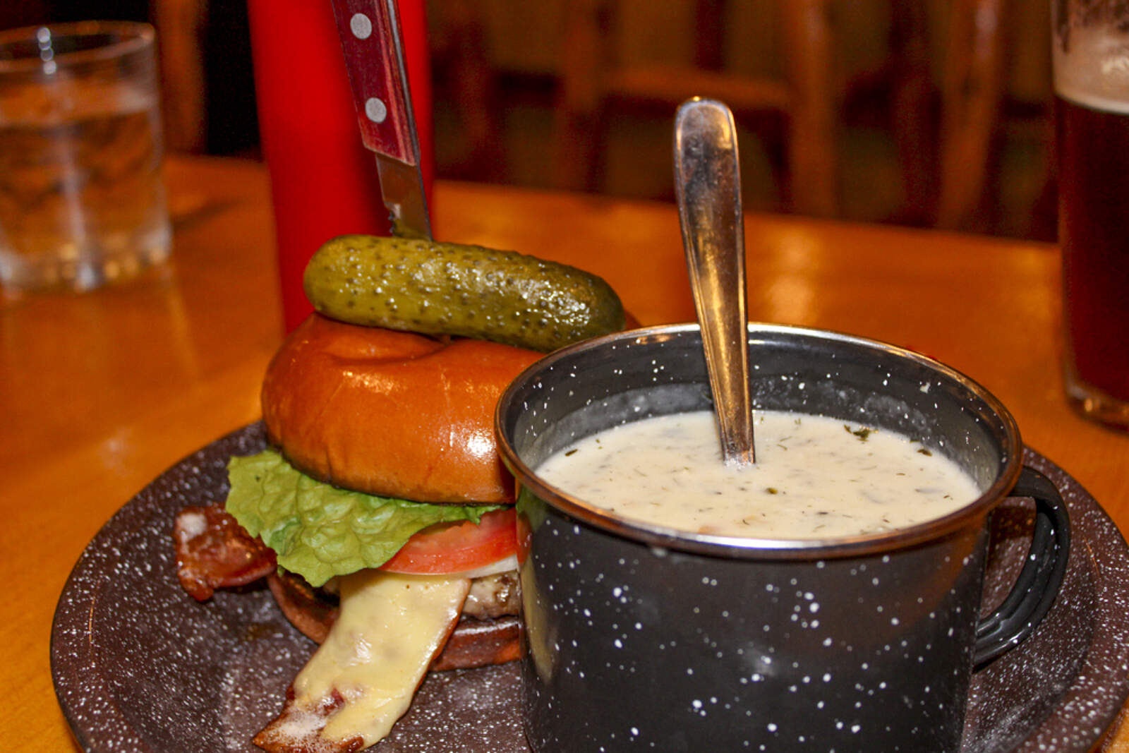 The menu features creative burgers, halibut fish and chips, and seafood mac, along with delicious soups (the reindeer sausage soup is a favorite!) and salads. You’ll also find kid-friendly options, along with Alaskan beer on tap and wine.