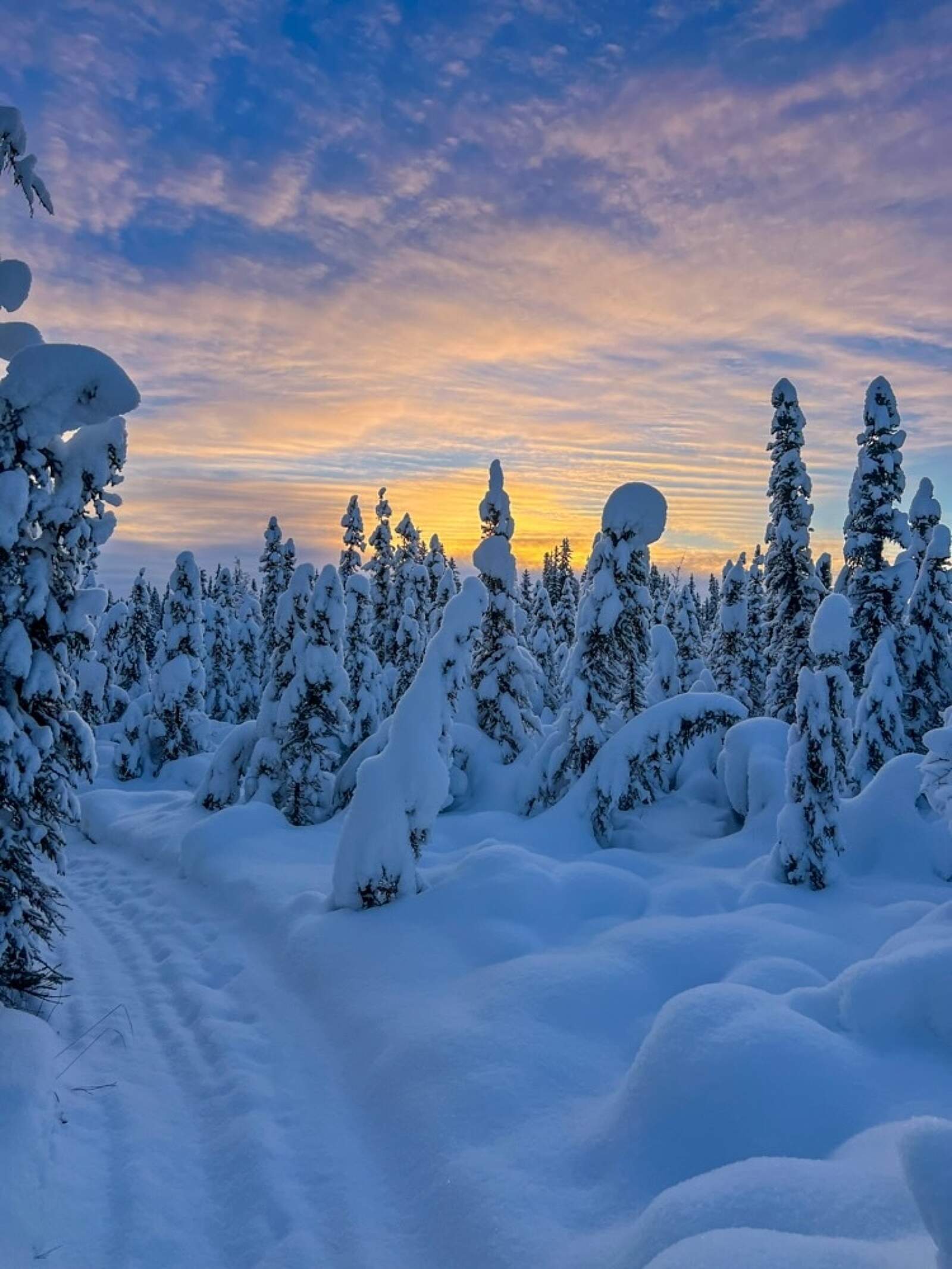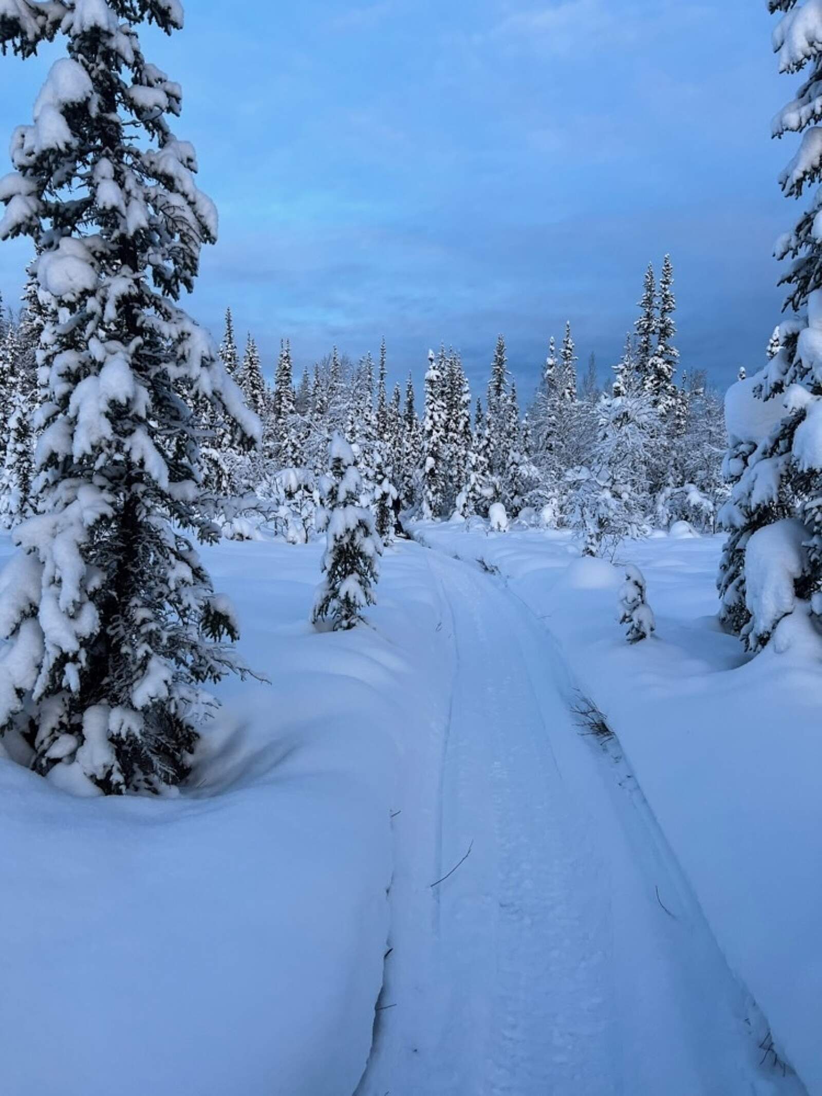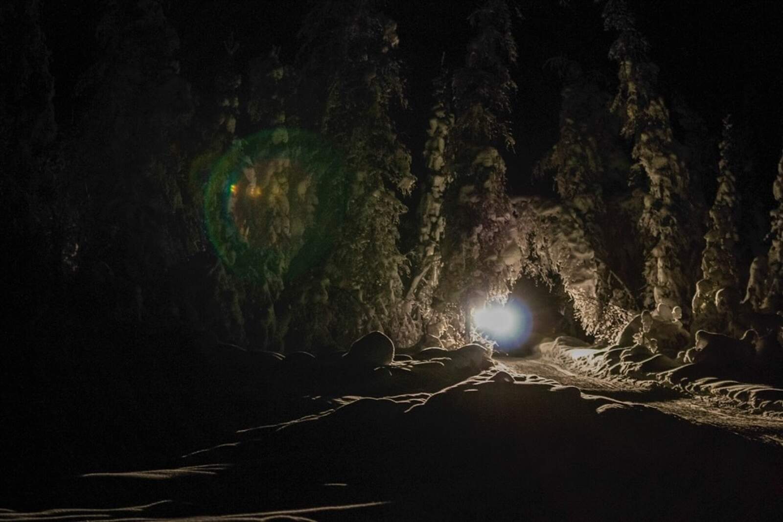 Then head off! You’ll start in the Goldstream Valley floor, where a blanket of snow covers up spruce bog and tussocky wetlands, then transition into stands of birch and aspen groves as you climb up the rolling hills and ridges of the Yukon-Tanana Uplands. The elevation gain delivers spectacular open-sky, panoramic views, which are perfect for aurora viewing.