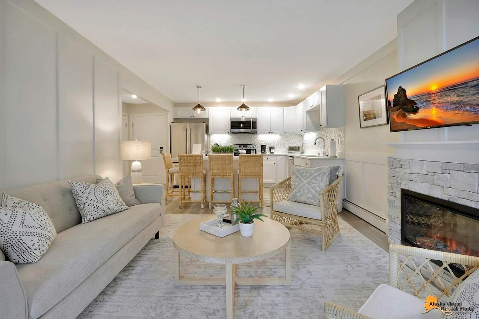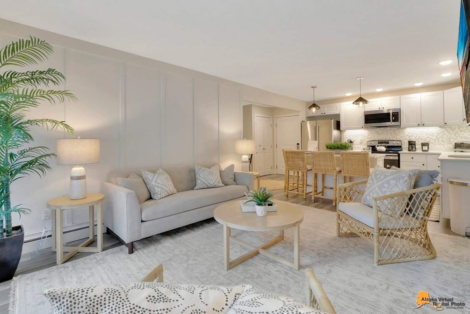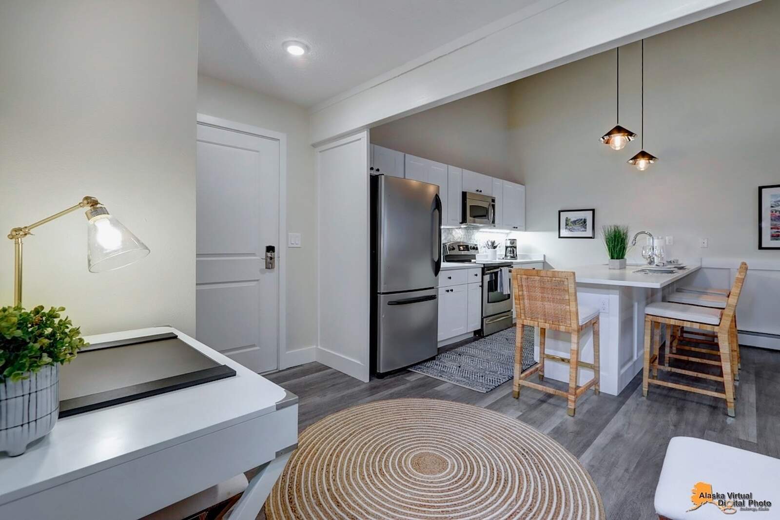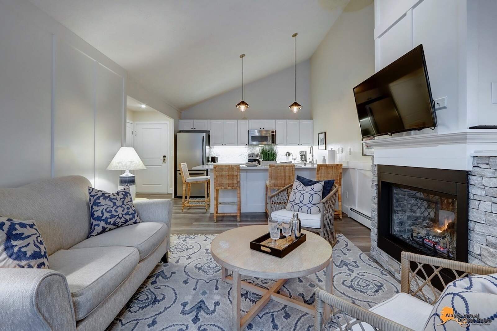 Fully equipped kitchens come with quartz countertops, dishwasher, fridge, oven, microwave, blender, dishes, and silverware—even complimentary, locally roasted coffee. Grocery stores and restaurants are nearby, with downtown Anchorage’s world-class eateries a short drive away.