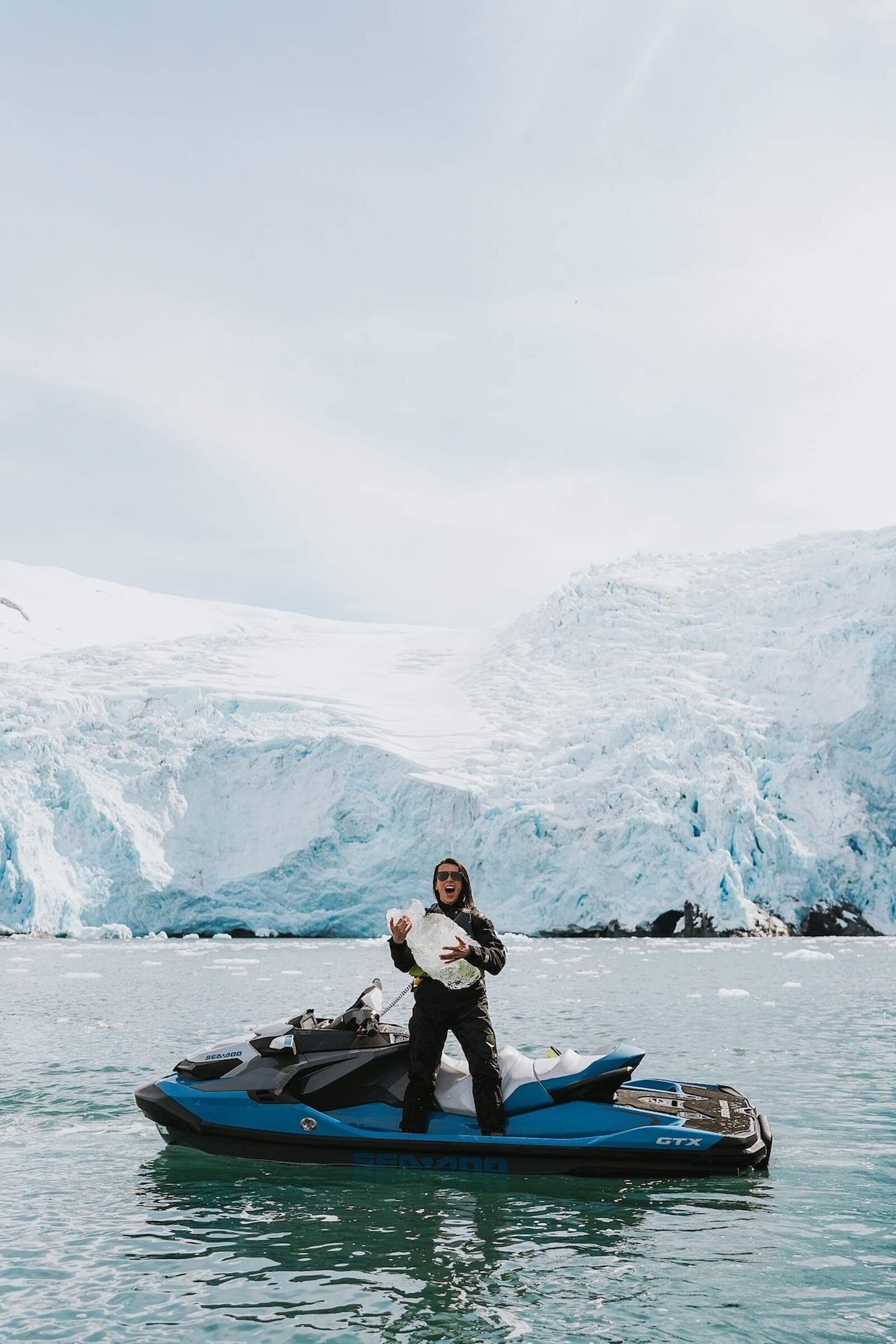 Owner, born and raised Alaskan Charlie Howard, an adventure guide in Alaska for over 20 years, wanted to find a unique way of showing off Alaska’s beauty. When he traded an old snowmachine for an old jet ski, he had an idea of how to do it. With the encouragement of his then-girlfriend (and now-wife), Bec, they opened Glacier Jetski Adventures, becoming the first glacier jet ski tour in the world! This small family-owned company is excited to share their experience and love of Alaska with you!