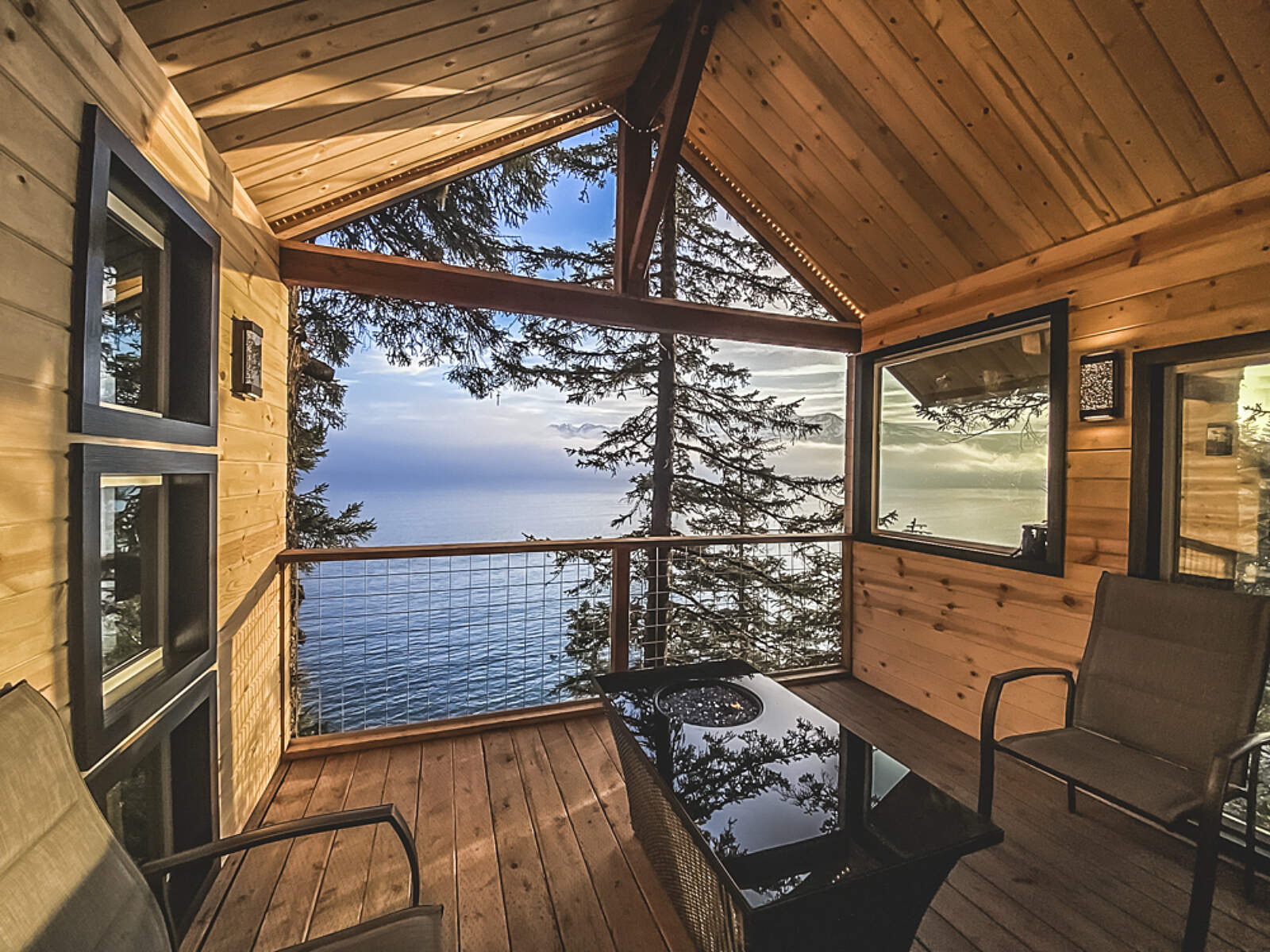 Perched on a 200-foot cliff near Seward, Granite Point Cabins offers a secluded Alaskan getaway with sweeping Resurrection Bay views
