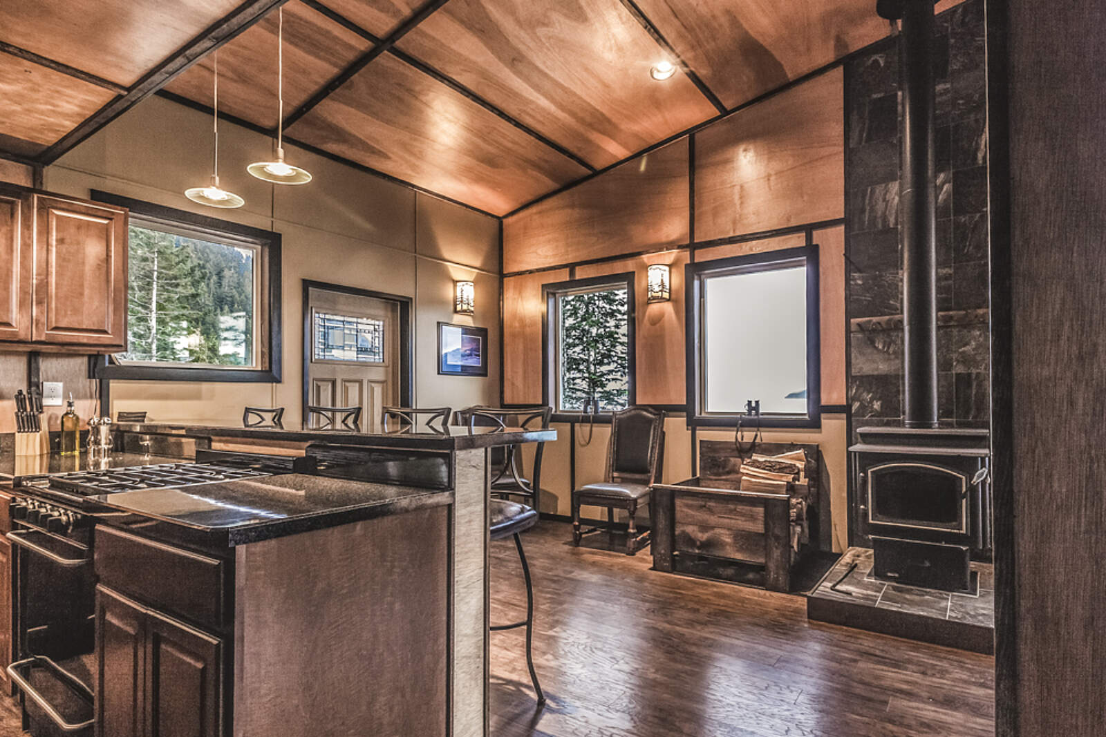 Mountain Lodge: The plushest option, this 7-guest, 2-bedroom cabin features a full kitchen, fridge, and cozy fireplace. Each room has a queen bed; there’s also a full futon and twin bed.