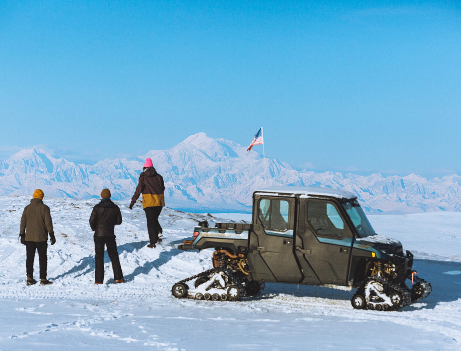 These 2.5-hour-long tours run three times per day, offering epic mountain views and pristine Alaskan backcountry access. No experience necessary to participate (must be at least 21 with a valid driver's license to drive or 18 with a military ID). You’ll experience driving your own snow UTV — a Utility Task Vehicle equipped with tracks during the winter that allows access into unforgettable and difficult to reach terrain. The enclosed cabins with heat and adjustable windows are a game-changer here in Alaska. This, along with your experienced guide ensures you will stay warm, comfortable, and most importantly safe while out exploring the Talkeetna mountains.