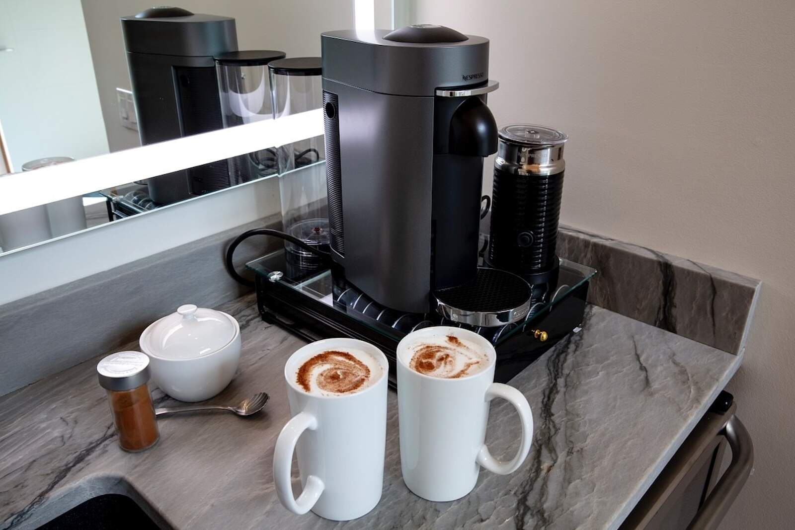 Ideal for two couples traveling together, the suites feature a living room, bedroom with double doors, and a couch in the sitting room with a queen-size Murphy bed. Private baths have walk-in showers, and there’s a wet bar in both the living room and bedrooms, along with coffee makers and refrigerators.