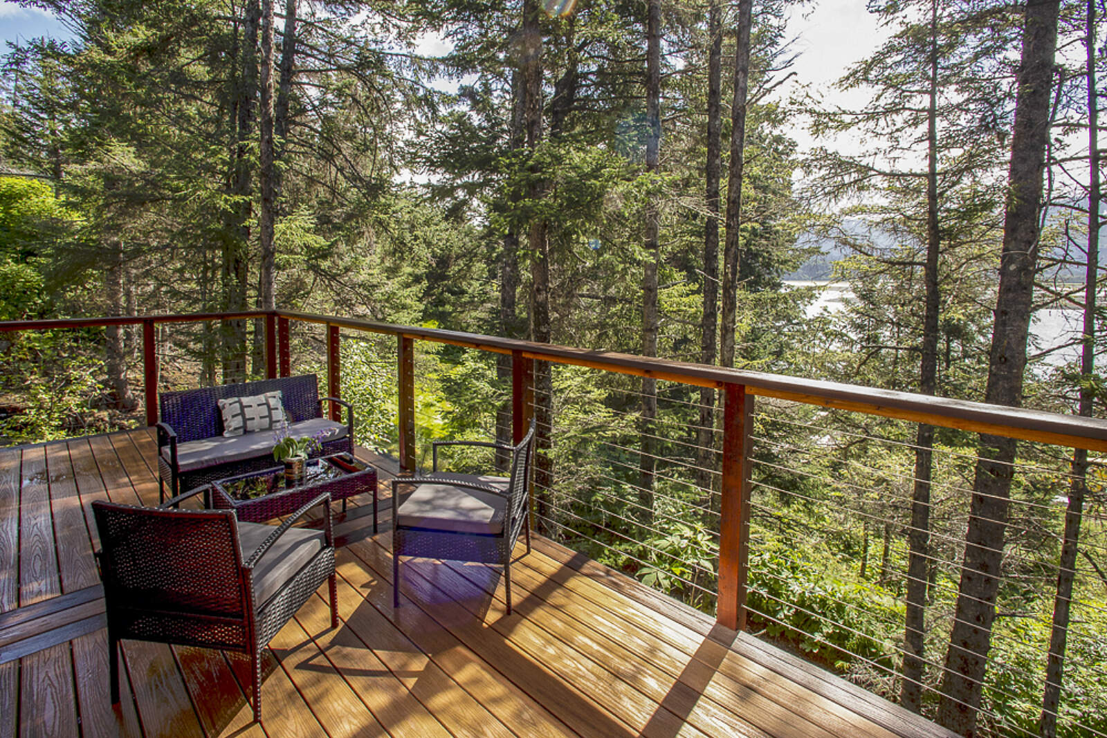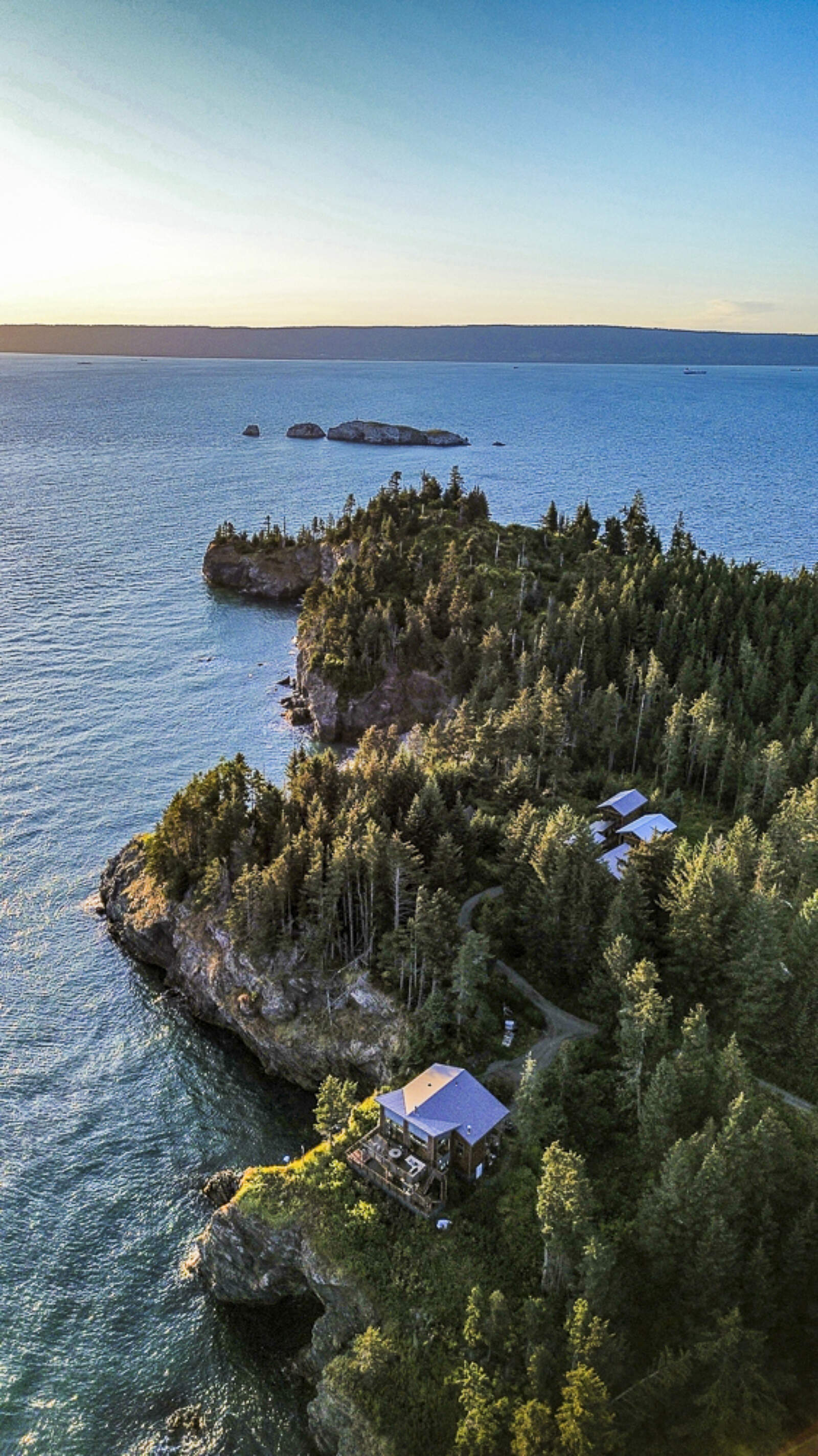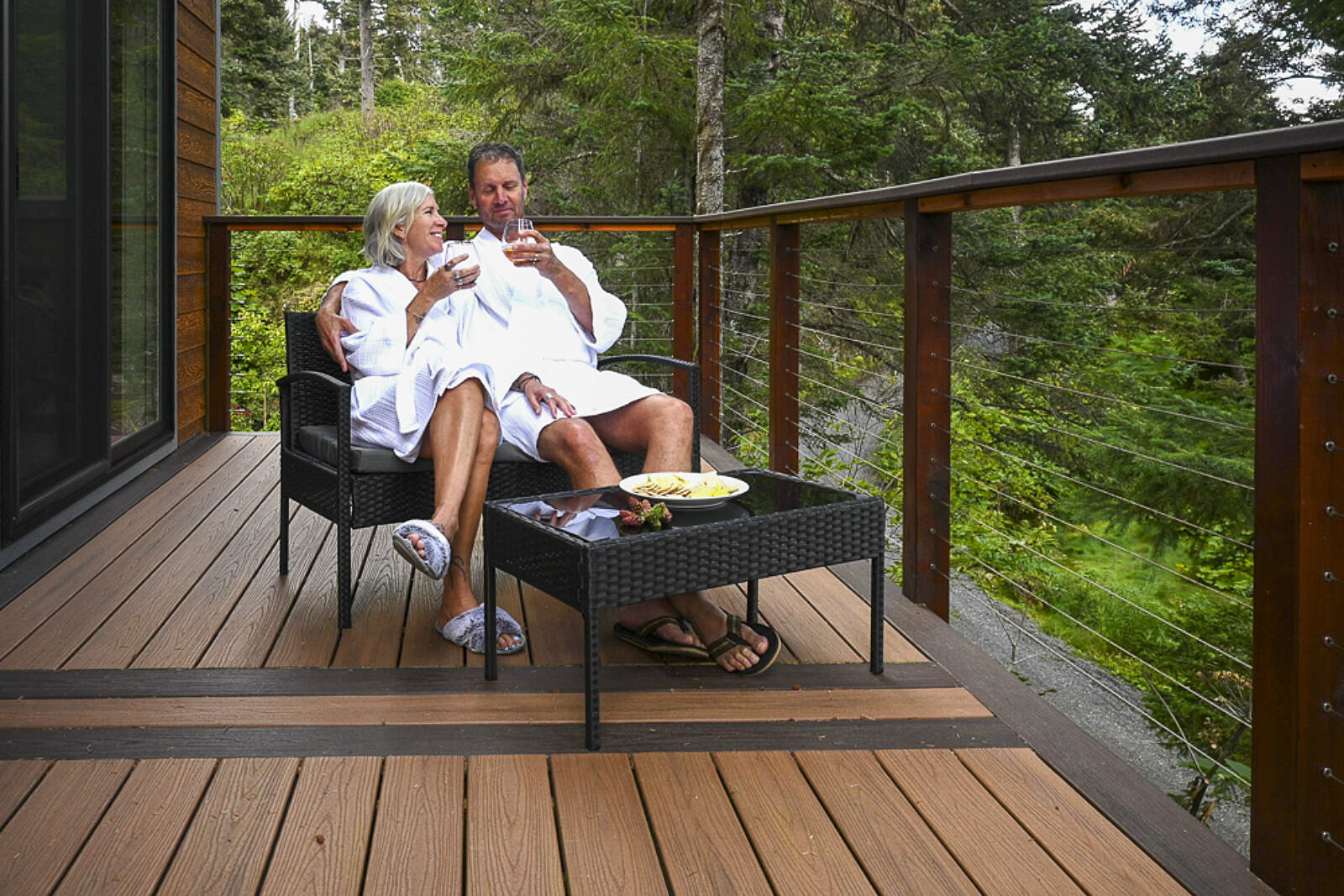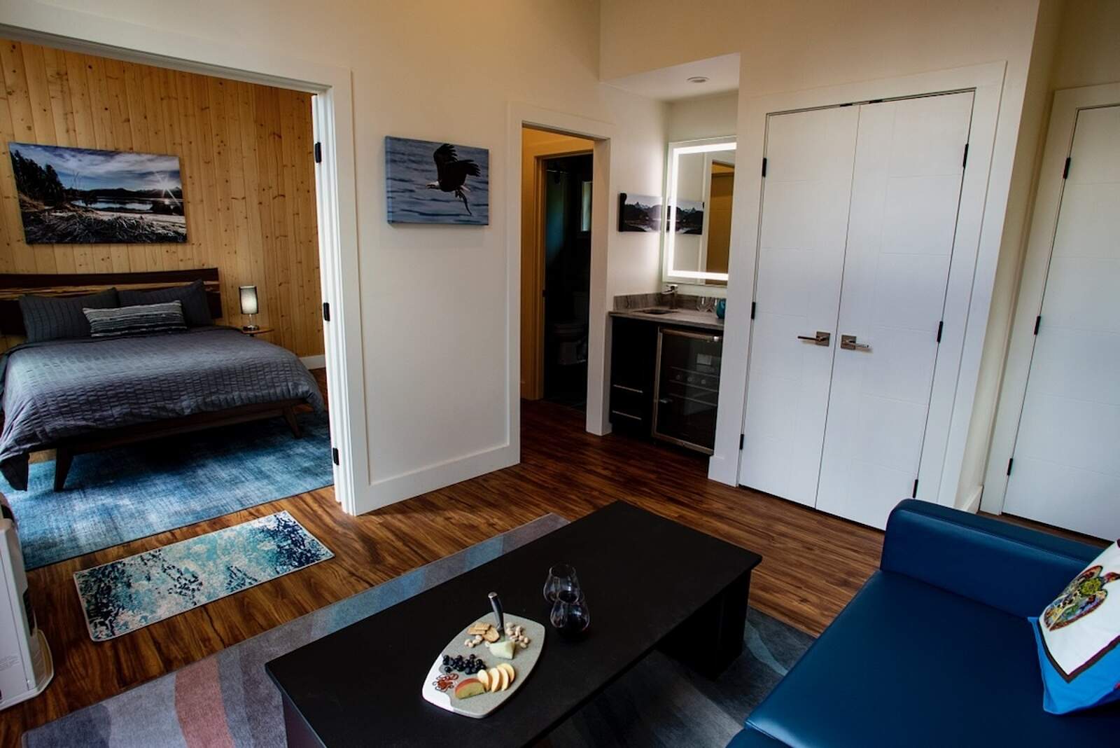 The cozy, modern cabins, surrounded by Alaska’s gorgeous wilderness, can accommodate up to 4 people and include stunning mountain and water views. They come with queen beds, en suite baths with walk-in showers, wet bars, and spacious decks with a bay view. Other amenities include a refrigerator, coffee machine, bathrobe, and slippers.