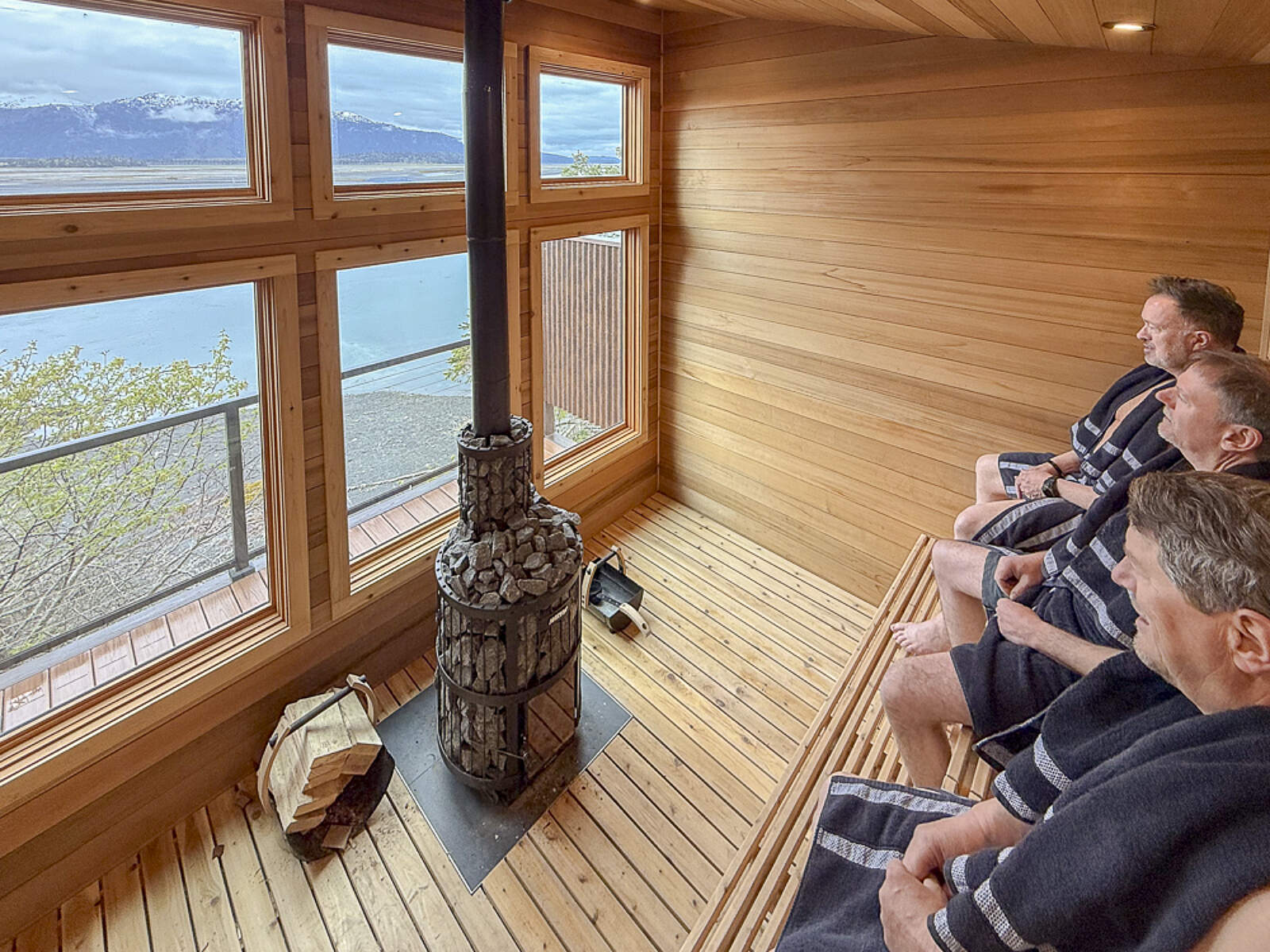 Fuel up with the included meals at the gourmet Meandering Goat, an Alaskan fine dining restaurant. A selection of Alaskan ingredient inspired craft cocktails, draft Alaskan craft beers and selection of fine wines are available at additional cost. Then opt for a variety of add-on excursions—or just stroll along the shore to see the marine life that appears when the tide goes out. You can also book a massage, hit the gym, relax in the sauna (which also boasts a dramatic view), and hang out in the recreation center, with its pool table, golf simulator, couches, and big screen TVs.