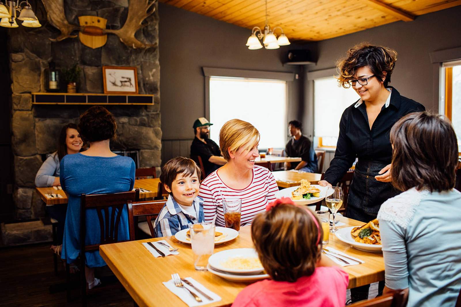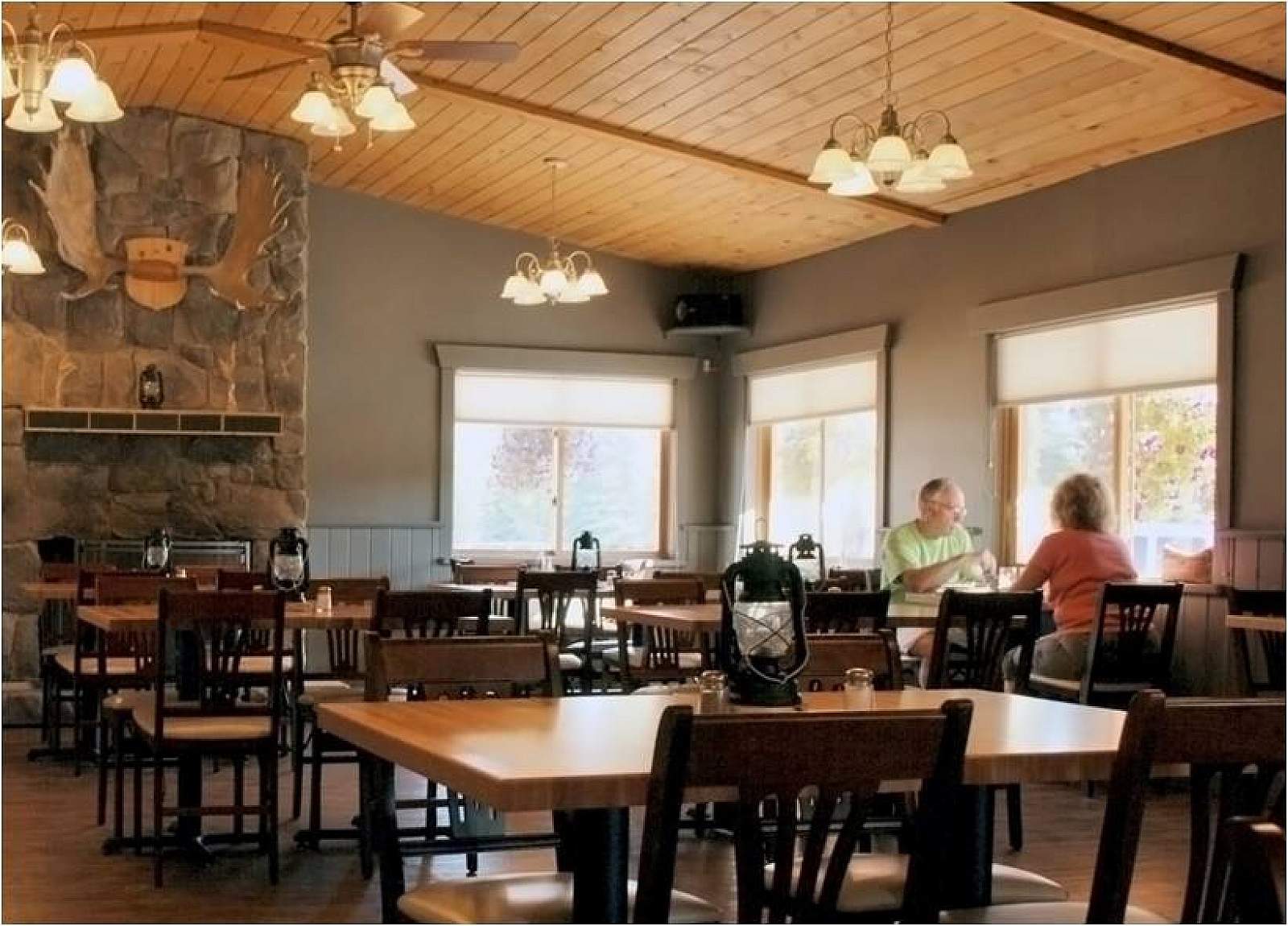 Located at Denali Cabins—a lodge of 46 cabins at mile 229 of the George Parks Hwy—Prey first opened in 2012. Decorated with warm, polished woods, a huge stone fireplace, and accented with lanterns and antlers, Prey has a rather roadhouse-chic vibe.