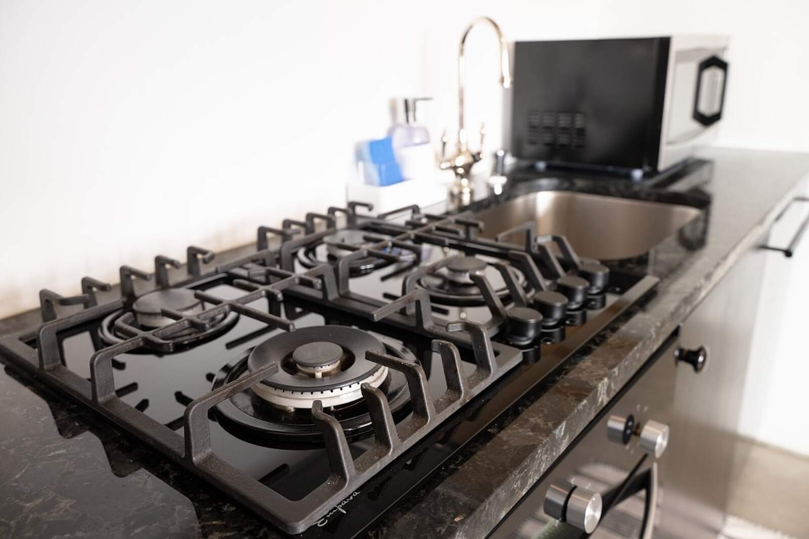 Studios on the ground floor each sleep two, with king-size bed and tiled bathroom, while the family den comes with a king-size bed and twin bunk beds.