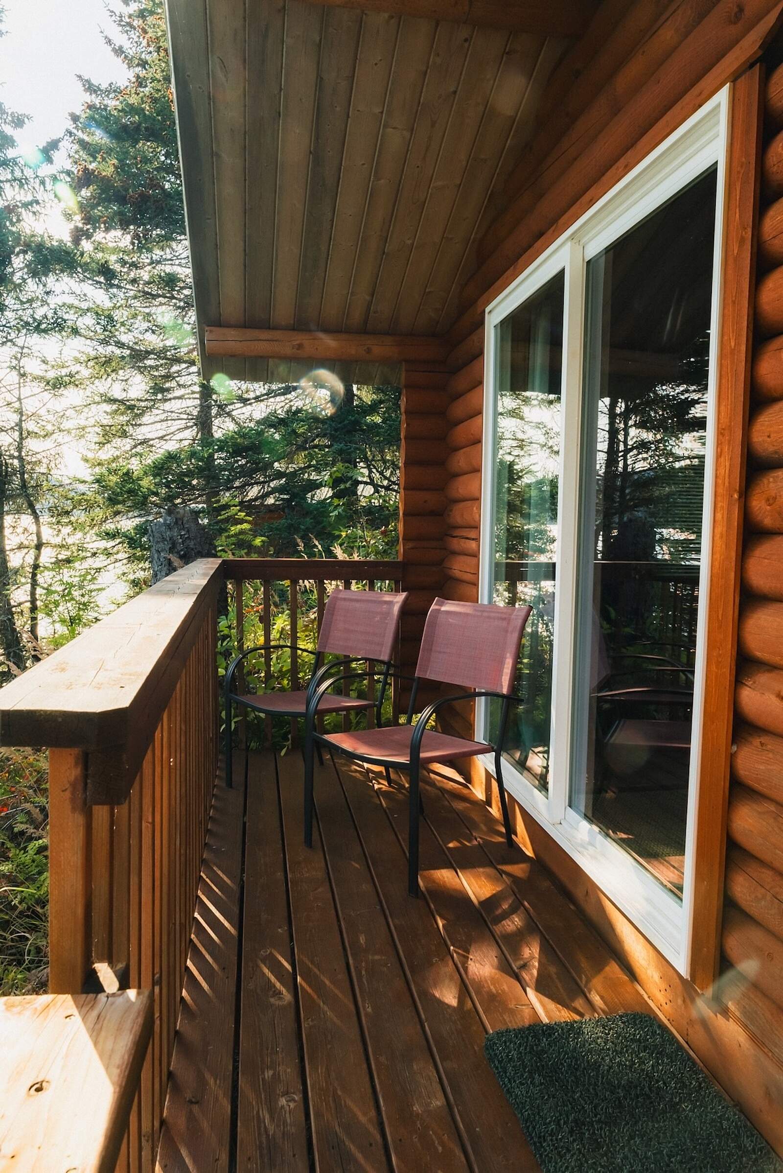 Set oceanfront, each log cabin features a porch with chairs to take in the view, along with a bathroom and shower with hot water and a propane heater. Two of the cabins have queen-size beds, while two others have a queen and a twin.