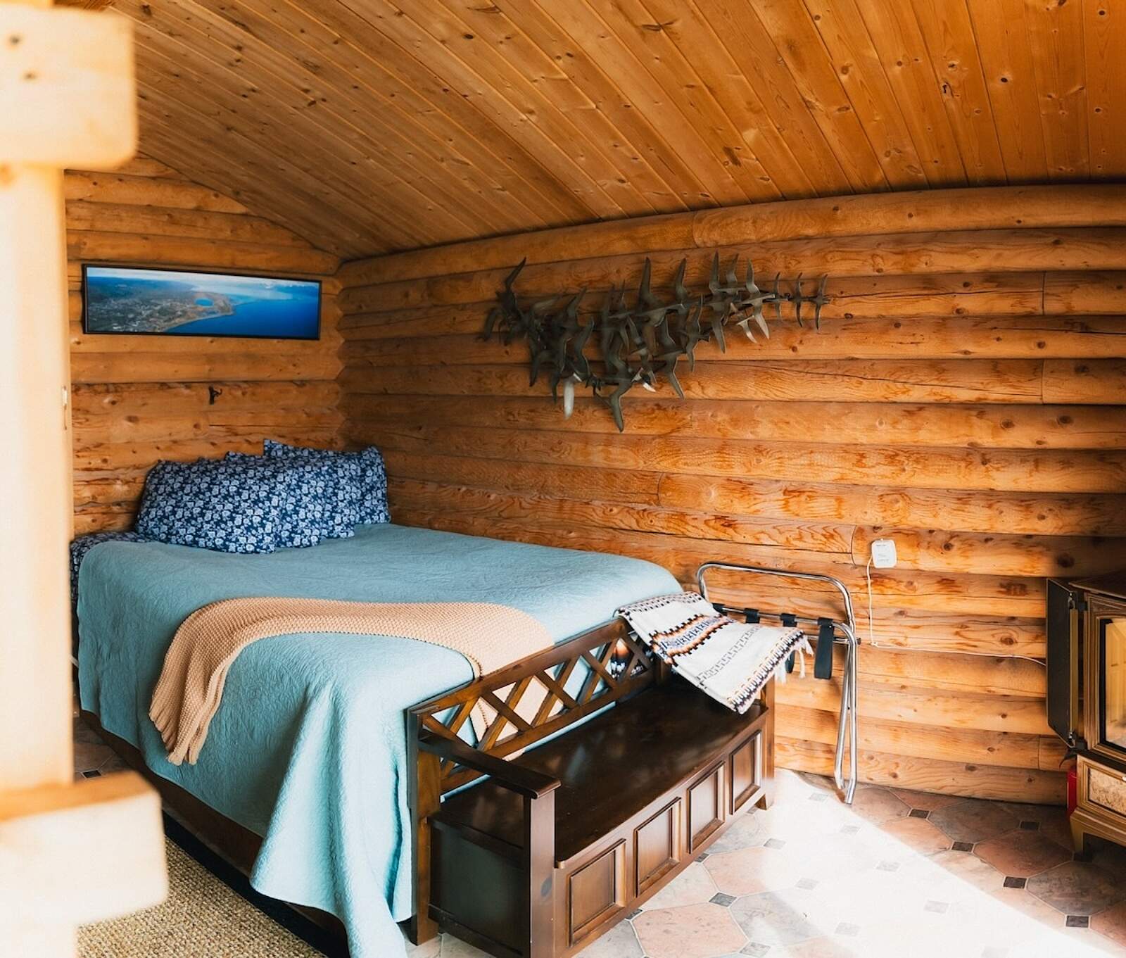 Soak in breathtaking views of water and mountains when you stay in one of the 4 charmingly rustic log cabins at this intimate, family-owned property beyond Homer. The whole property is also available for small weddings, retreats, and any other event (12-15 people).