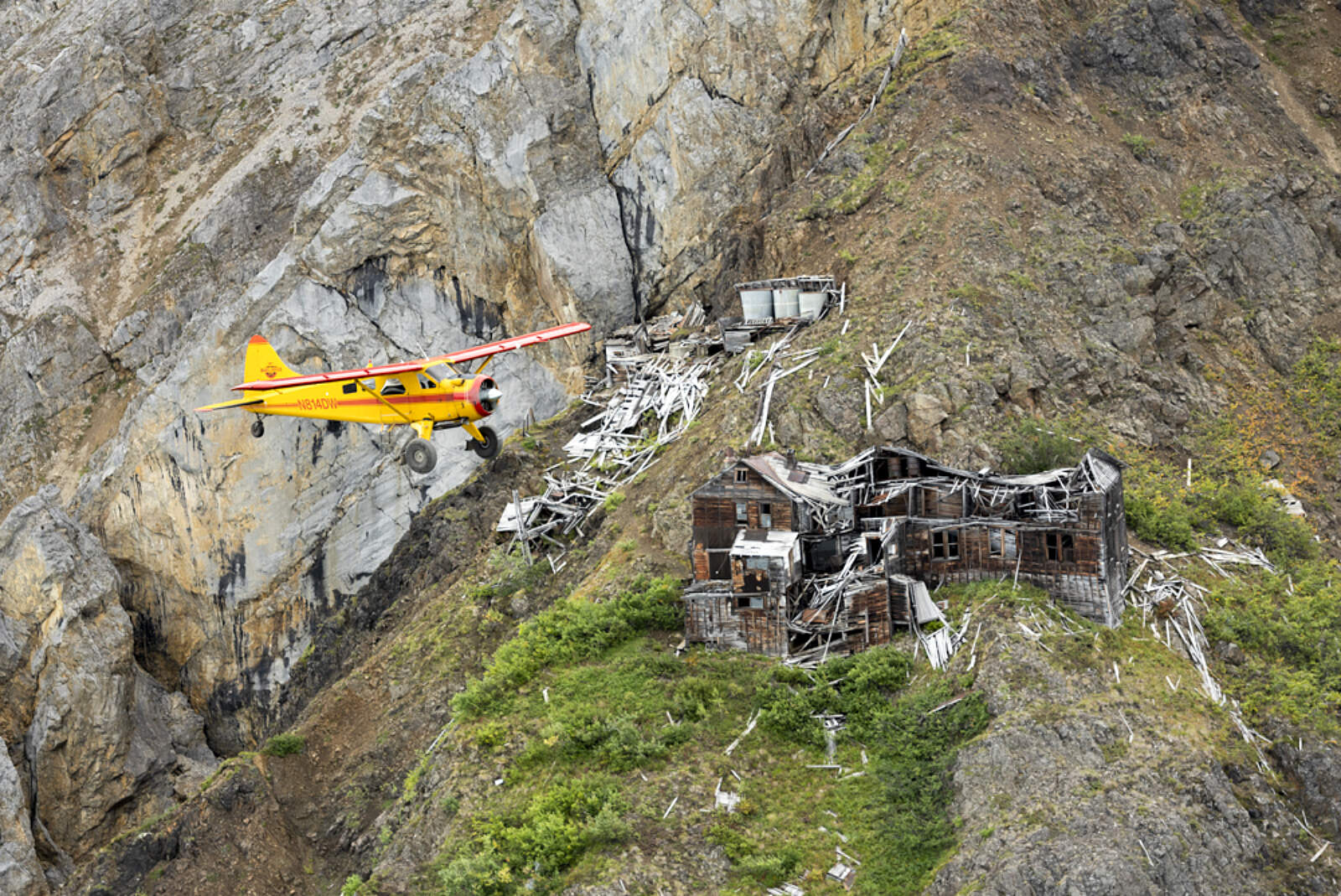 This popular 70-minute tour soars above 13 glaciers, Chitistone Canyon, the warped limestone of the Mile High Cliffs, the 7,000-foot Stairway Icefall, and Erie Mine, which clings to the mountainside 3,000 feet above Root Glacier. You’ll see the nearly century-old ruins of the Nizina Bridge (1920’s) and the massive Sourdough Rock Glacier.